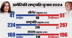 सीएनएन के मुताबिक, डोनाल्ड ट्रंप अमेरिकी राष्ट्रपति चुनाव जीतने से महज 5 इलेक्टोरल कॉलेज वोट दूर हैं। वह अगर इन पांच वोट्स को हासिल कर लेते हैं, तो 270 के बहुमत के जादुई आंकड़े को छू लेंगे। इस बीच उनकी प्रतिद्वंद्वी कमला हैरिस काफी पीछे 214 इलेक्टोरल वोट पर ही सीमित रह गई हैं, जबकि ट्रंप 266 इलेक्टोरल कॉलेज वोट हासिल कर चुके हैं। प्रधानमंत्री नरेन्द्र मोदी ने उनको बधाई दी है।